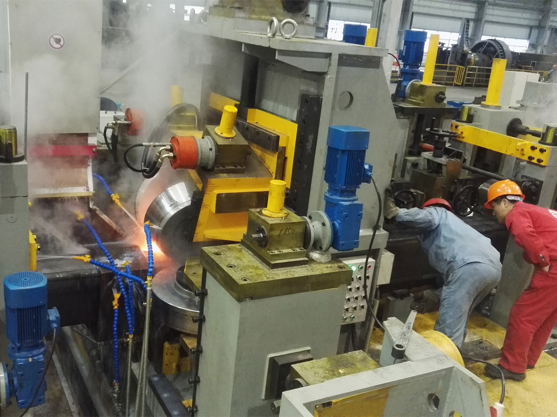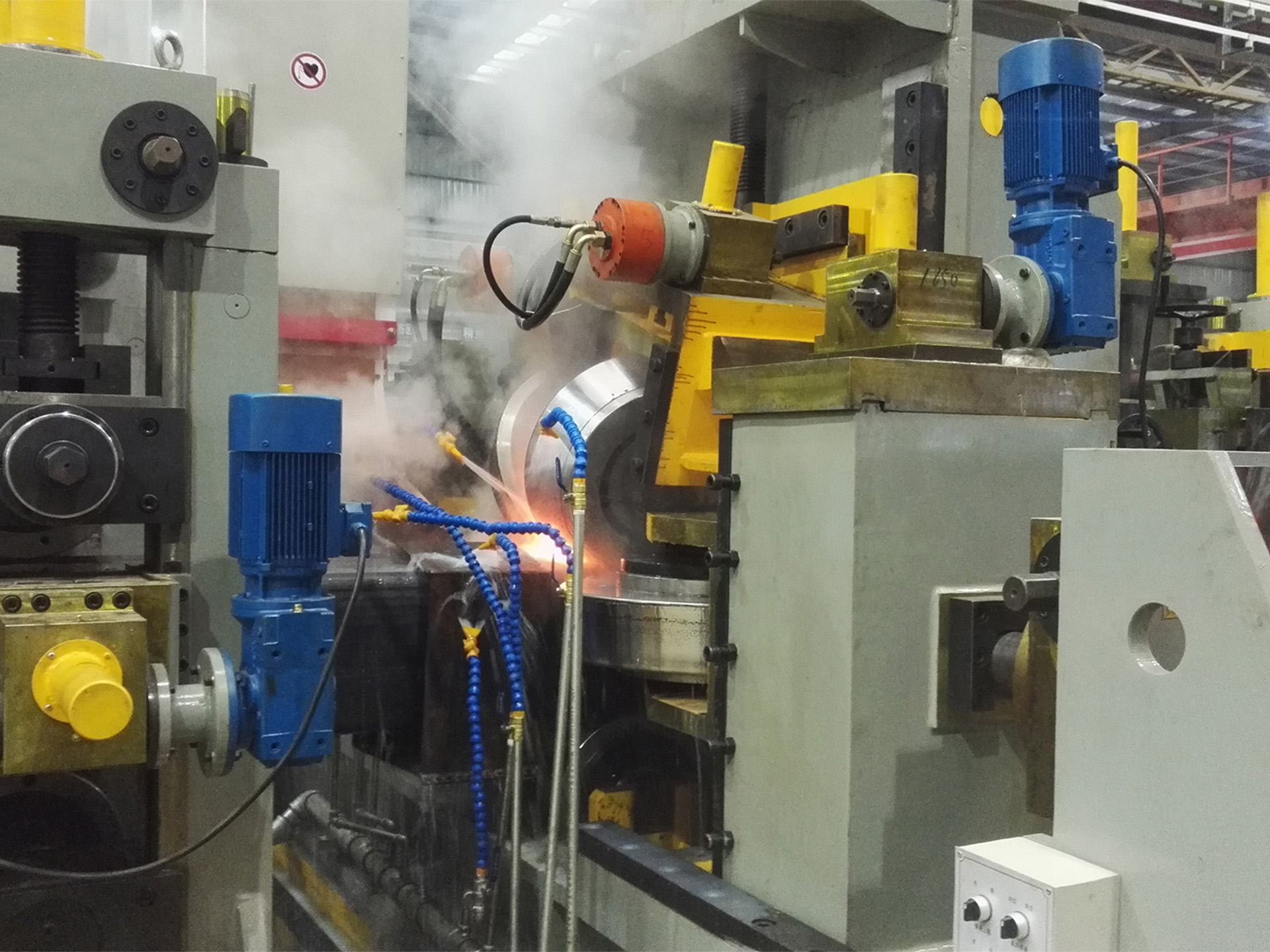 The complete line is fully automatic. The motor adjusts the opening and closing, lifting and lowering of the rollers for change different tube size.
