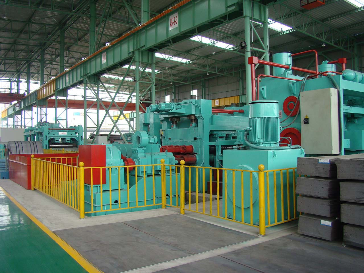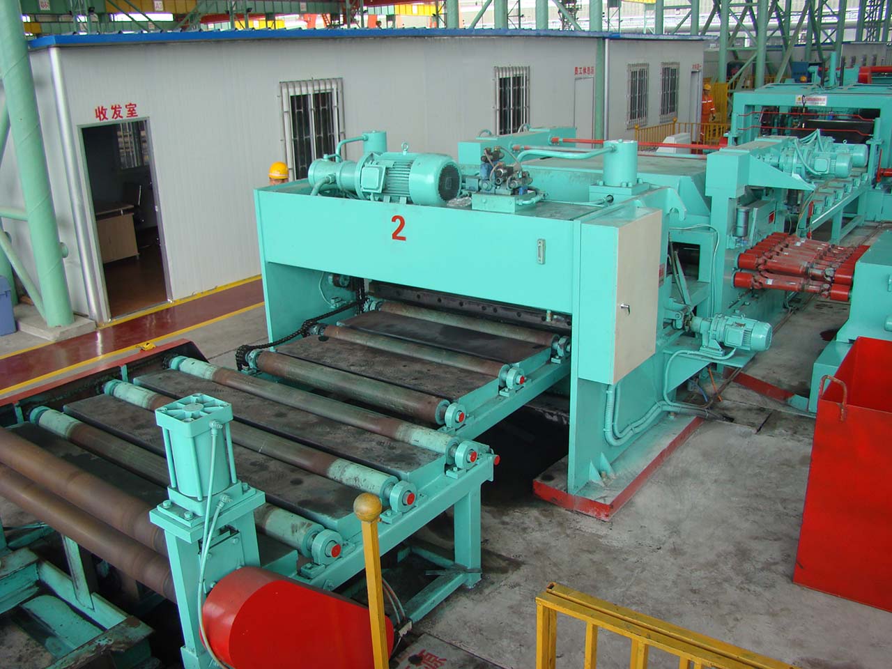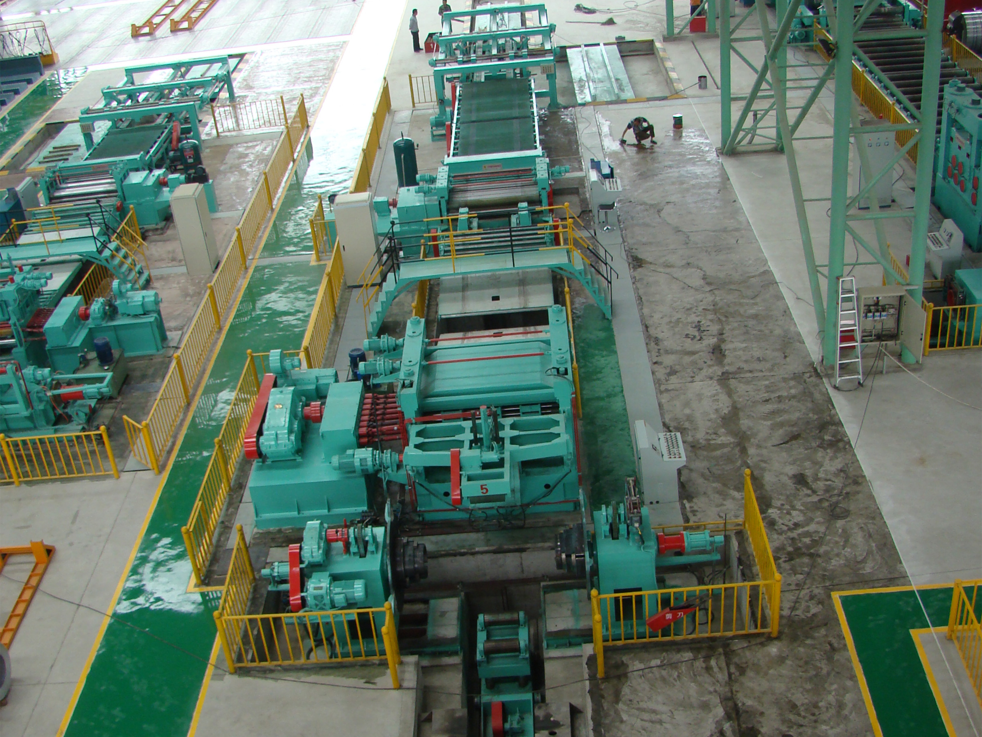 This line consists of loading cut, single pivot uncoiler, pre-leveler, hydraulic loop bridge, deviation corrector, fine leveler, servo length gauge, shear, belt conveyor, reversal discharger, stacker, discharging cart, servo transmission system, hydraulic system, etc.